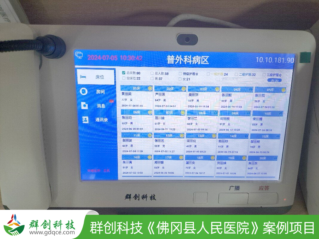 为进一步优化住院服务流程,提升护理管理精细化水平,佛冈人民医院近期成功部署并应用了群创科技的“医护对讲系统”和“护理看板系统”。