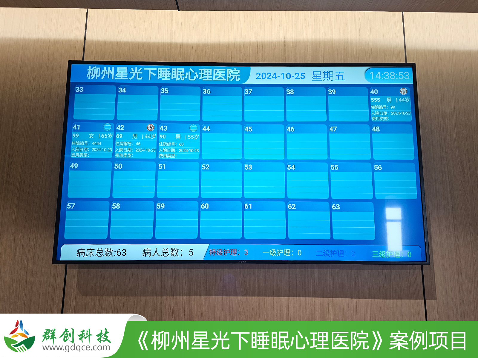 可视管理,高效协同: 护士站大屏实时展示患者护理等级、风险标识等,提升护理效率、减少人为错误,并优化资源配置。