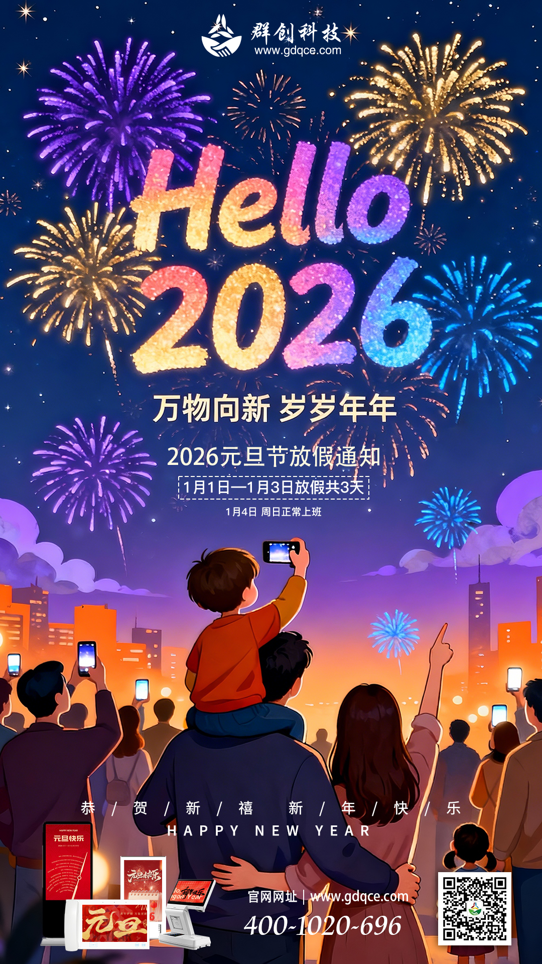 假期期间,群创科技全国业务部门也会为大家继续提供咨询服务,给您带来的不便万望见谅,再次感谢您对我们的理解和支持,祝您元旦快乐,新的一年生意兴隆!