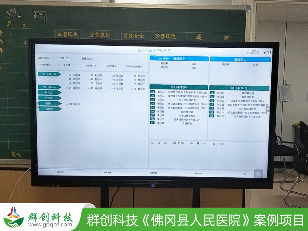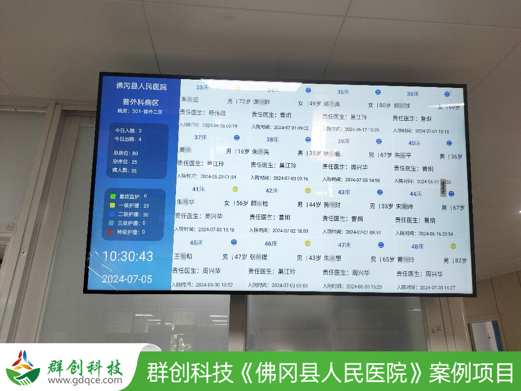 为进一步优化住院服务流程,提升护理管理精细化水平,佛冈人民医院近期成功部署并应用了群创科技的“医护对讲系统”和“护理看板系统”。