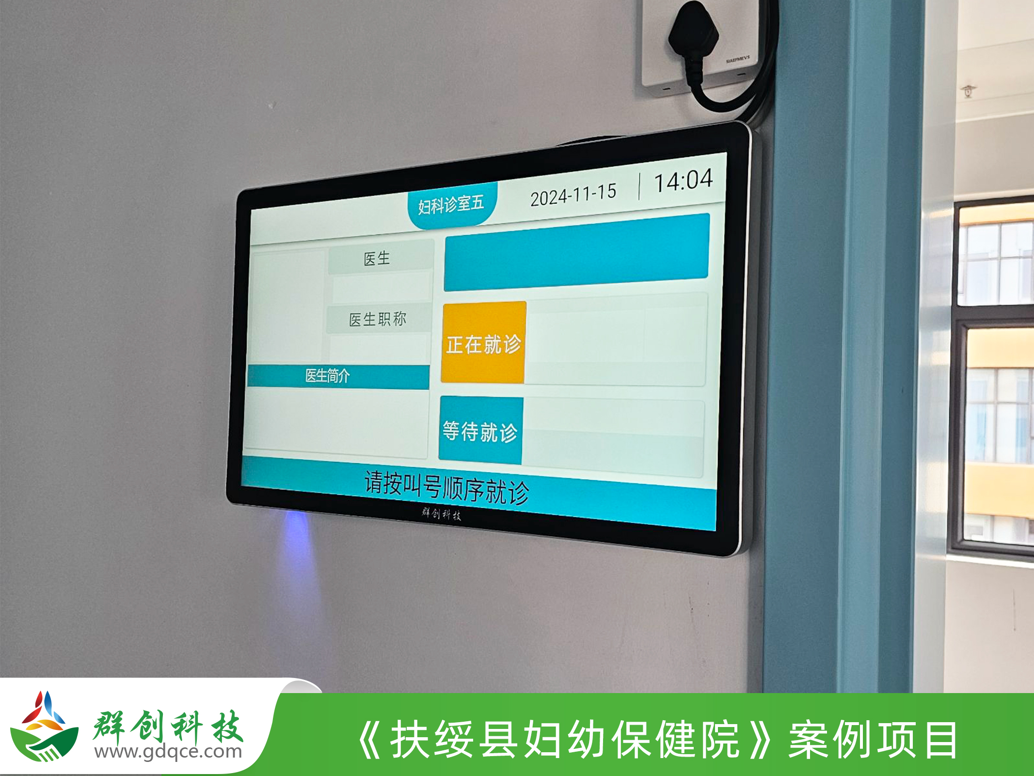 各科室候诊区的部署一级分诊显示屏和每个诊室门口的诊室屏,构成了清晰的可视化信息告知传达。
